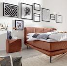 Interliving boxspring postelja, serija 1413, blago: Galant siena, sestavljena iz: vzglavja, konstrukcija: „slim“ žepkasto vzmetenje, ležišče: 2x 7-področna žepkasta vzmetnica H2/H3, nadvložek: hladna pena, podnožje iz aluminija, barva: mat črna, ležalna površina: 180x200 cm, prevleka: 100% poliester. Brez dekoracije, blazin in odeje.