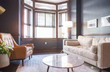 Houses built in the 1940s also incorporate perky art-deco elements: semicircular balconies; a long, vertical strip comprising glass panes for the stairwell; portholeshaped windows.