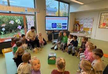 In onze school hebben wij een schoolbibliotheek. De kinderen van de groepen 3 t/m 8 kunnen onder schooltijd een boek lenen dat zij in de klas kunnen lezen. De kleuters mogen ook altijd een boek kiezen, mee naar huis nemen en samen met papa of mama lezen. Onze contactpersoon van de bibliotheek in Nijmegen heet Joran en hij komt een paar keer per jaar voorlezen in de klassen. Zo ook op 11 november. De kinderen uit de verschillende groepen vinden dit erg leuk, ze hangen aan zijn lippen, Joran doet dit super goed!