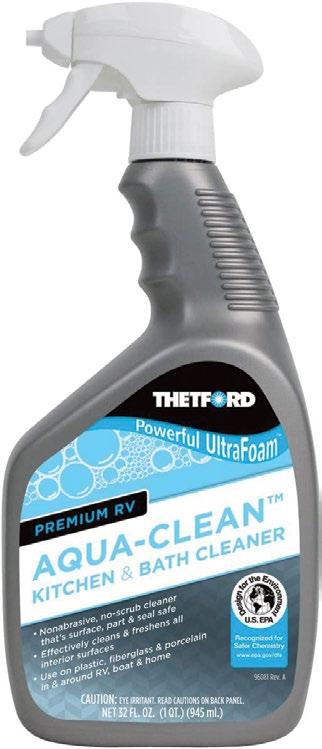 Designed to be compatible with RVs, Thetford’s kitchen and bath cleaner requires no scrubbing with its foaming action. It will help remove soap scum, rust, and hard water stains.