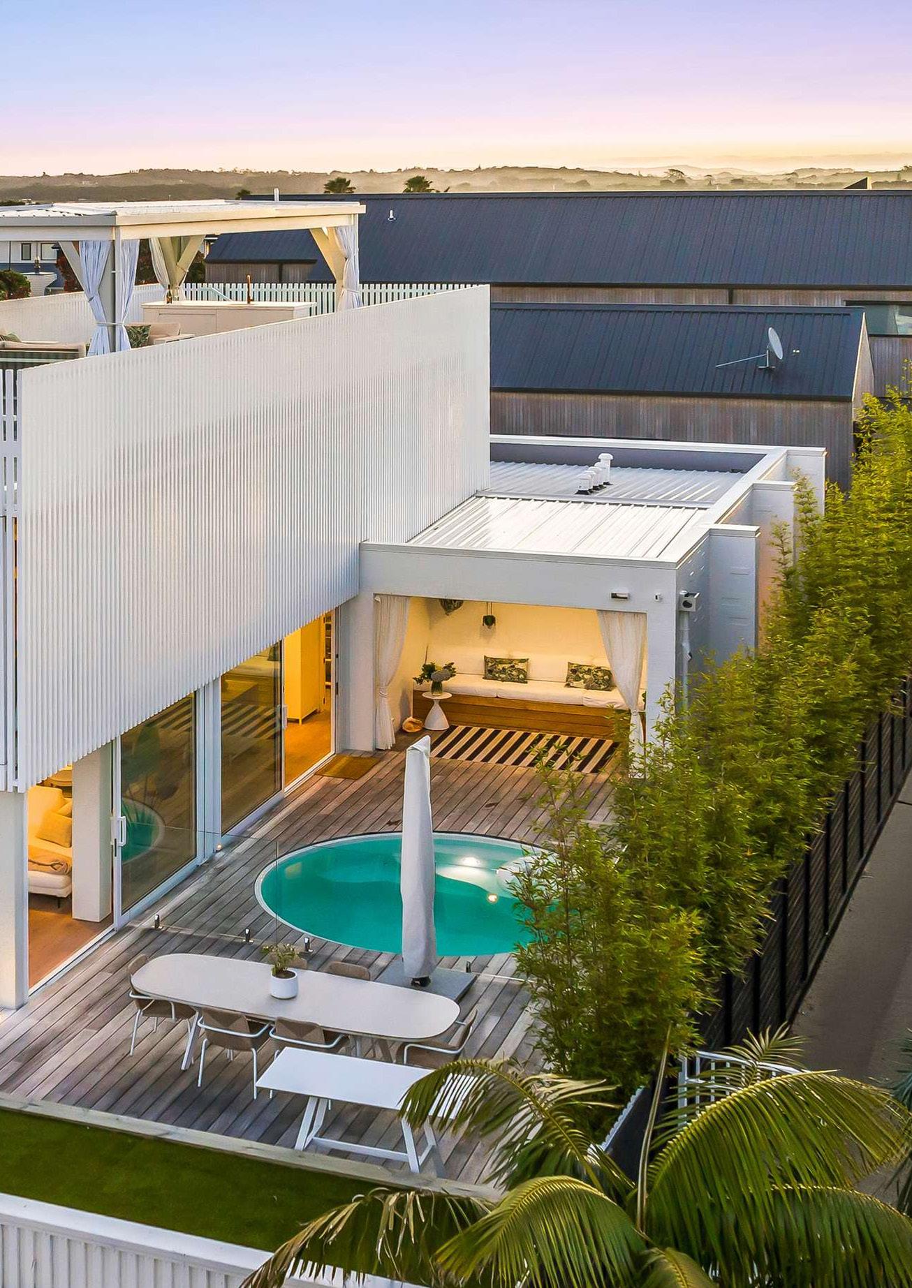 The roof top bar feels like Ibiza, the spiral staircase is a winner, love the white marble bench tops and the steel kitchen from IMO, and soaking in the outdoor bath on the master balcony.