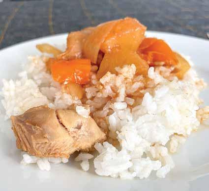 Your favorite Sweet and sour sauce, bell peppers, onions, pineapple, mushrooms, and serve with rice.