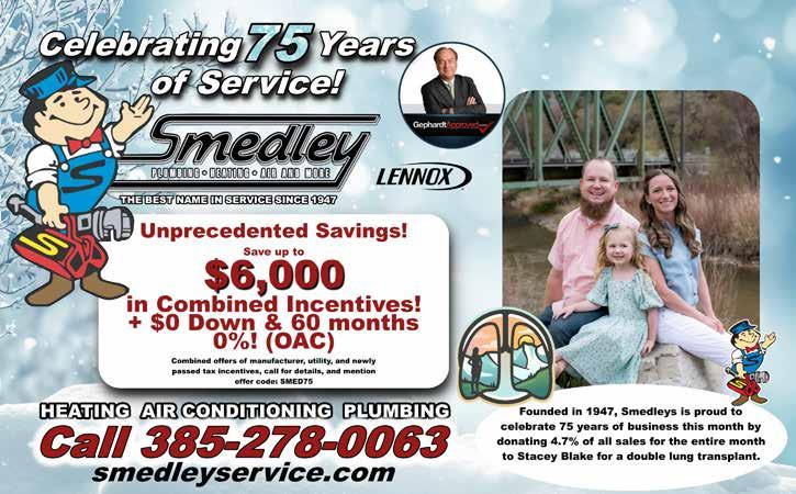 Beauty to Admire, Cleaning you'll Love!! 2620 Wadman Dr. Ogden Custom Made Locally in Ogden Set up your consultation now! Call 801-389-6363 Visit our Website www.SandandSwirl.com WORRY-FREE / GROUT FREE SURFACES CARRARA CULTURED MARBLE VERY LOW MAINTENANCE CULTURED GRANITE MOLD RESISTANT AFFORDABLE SUBWAY TILE TRUSTONE SEALED Now appearing in your inbox! Exclusive deals from our advertisers for our readers We send out an email once per month Find deals that aren’t available anywhere else Signup for FREE by visiting the site below or scan the code with your phone camera www.connectionpub.com/deals Now appearing in your inbox! Exclusive deals from our advertisers for our readers We send out an email once per month Find deals that aren’t available anywhere else Signup for FREE by visiting the site below or scan the code with your phone camera www.connectionpub.com/deals www.connectionpub.com/deals EXCLUSIVE DEALS for our readers from our advertisers e-mailed just once a month! Signup for FREE at our website or scan the code with your phone’s camera MONTHLY DEALS just for our readers! We won’t use your e-mail for anything else. SAVE SAVE SAVE November 2022 | syracuseconnection.com 43