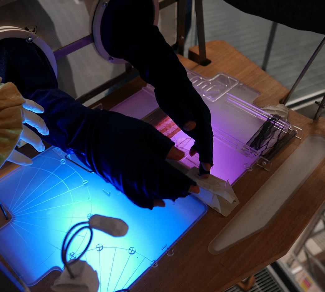 As our project site was situated above the Clothworker’s Study, we created tactile objects that would allow visitors to replicate movements performed below. There were 7 movements including: tracing, cutting, sewing, dragging, rolling, and folding.