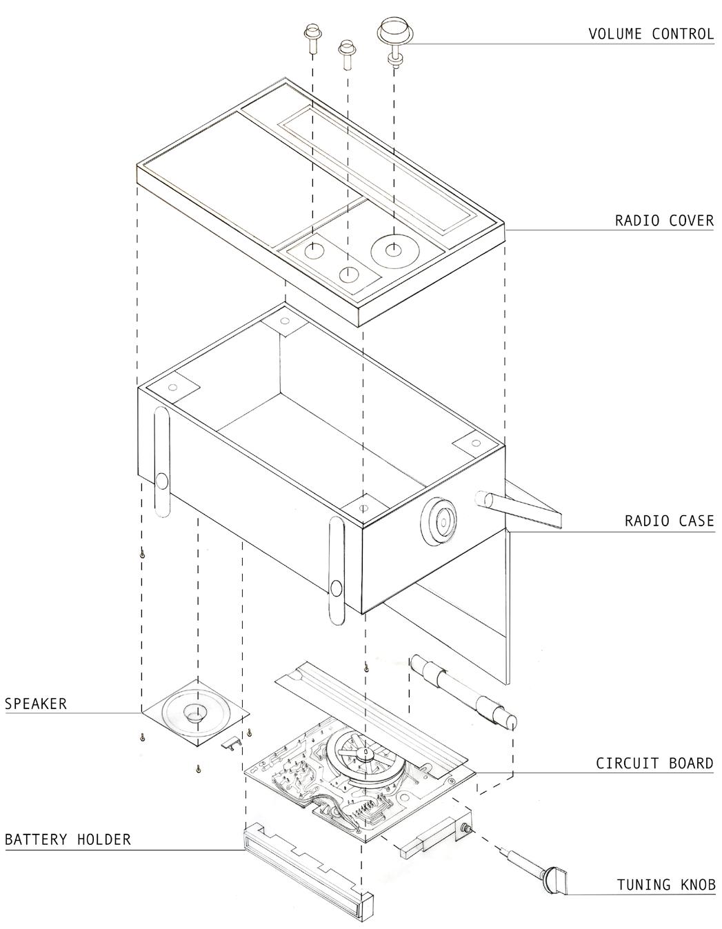 A Exploded axonometric drawing of radio