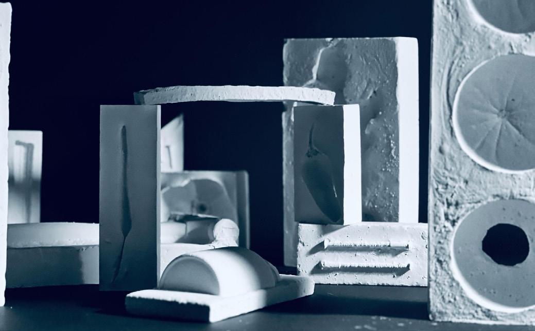 Interested in the contrast between rigid and organic forms, I casted fruits & vegetables and man made tools in plaster. Noticing interesting spaces in the casts, I wanted to explore how these forms might be reinterpreted on an architectural scale.