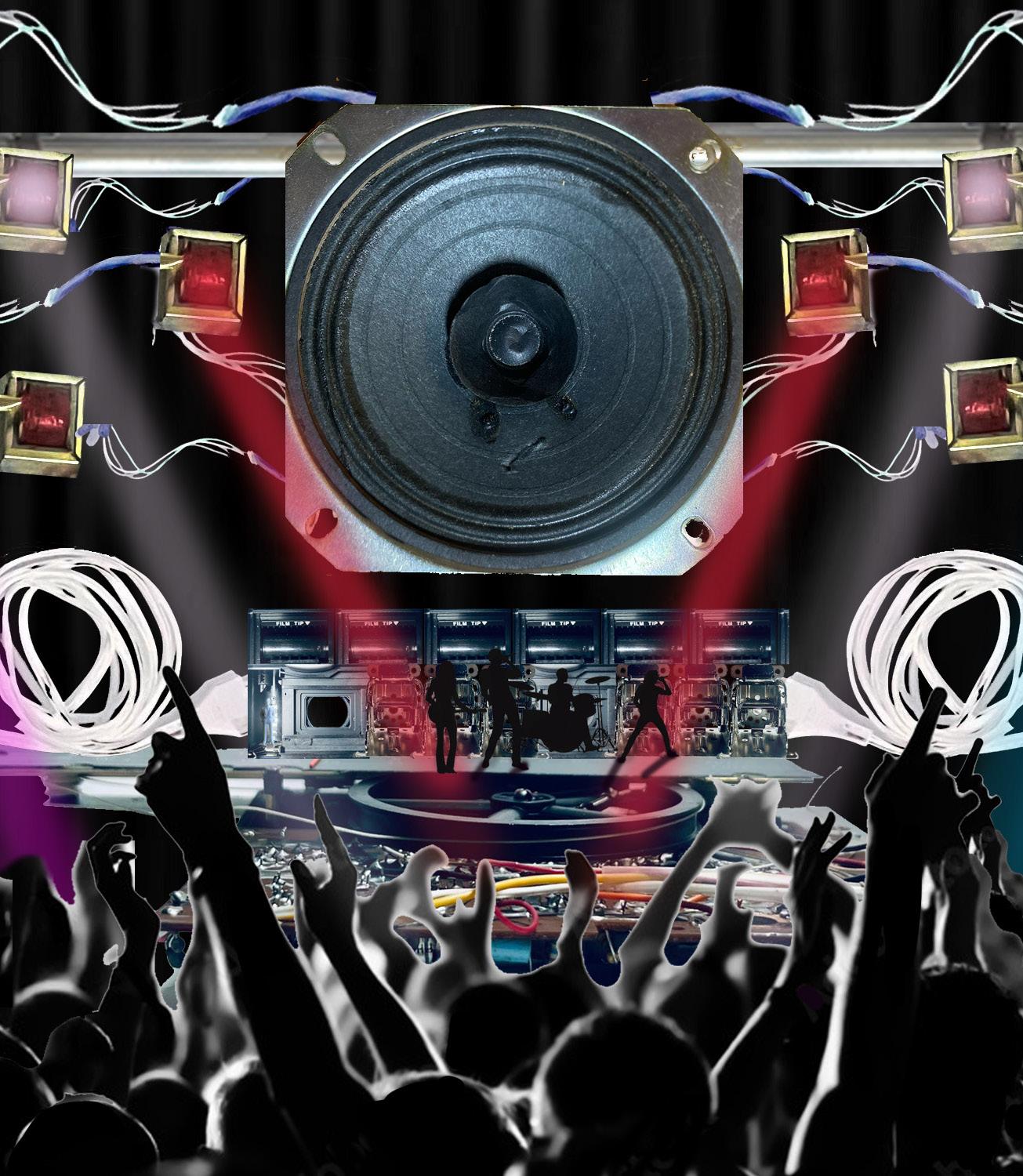 Expanding on my interest in mechanical parts and the spaces within them, I deconstructed an old radio and photographed the components. Then, I reimagined how the different components be combined and reinterpreted as inhabitable spaces relating to sound.