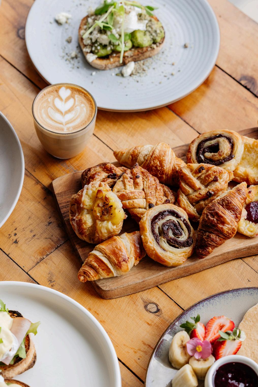HOUSE BAKED DANISH + CROISSANTS served with butter, preserves + honey