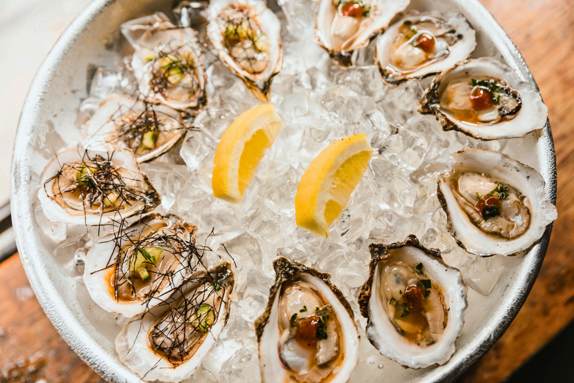 Freshly shucked Sydney Rock Oysters with lemon and eschallot mignonette