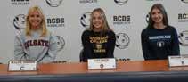 In November, RCDS highlighted three studentathletes who will continue their athletic careers at the Division I level with a special National Letter of Intent Signing Day on campus. Pictured left to right, Willow Edwards ’25 will play softball at Colgate University, Lily Smith ’25 will play soccer at Colorado College, and Autumn Tombline ’25 will play volleyball at the University of Rhode Island. Each student signed their letter of intent with family, friends, and members of the RCDS community in attendance.
