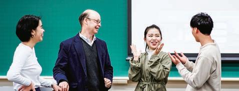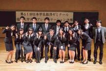 ◀「合同型演習」を行うゼミは、3年生 後期に通常の「演習」に加えて「応 用演習」も学修します。下級生ゼミ のチームに上級生が「管理活動(コー チング)」を展開。また、合同型演習 は、個別の専門知識に加え、就職後 に必要な「社会人基礎力」の養成も めざします。