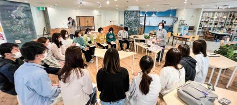 結 える」を立ち上げたきっかけは、2年生のときに、鴨川の川べり でたくさん溜まった廃棄物を見たことです。ゴミ拾いは大切なことですが、根本的にゴミを減ら すことが必要ではないか。そんな気づきから活動を始めました。今では、廃棄・余剰資源を活用 した素材開発と、まちづくりをテーマにした取り組みを行っています。今回の「サステナブル ロ ハスフェスタ」(イオンモール京都桂川)で販売した商品 は、余剰・廃棄衣料を細かく断裁した後にアップサイクル した雑貨です。すでに事業化しており、原料になる素材提 供や粉砕に協力してくださる企業などとの連携のうえで 成り立っています。地域、住民、行政がつながる地域循環 を生み出す事業の一つです。私たちは「日常に彩りの循環 を」をミッションに、日常で廃棄問題を実感できる仕組み づくりによる社会貢献をめざしています。循環型の未来 社会をつくるには、現場はもちろん、法律などさまざまな ことが関わります。単に事業を進めるだけでなく、全体を 見通せる活動を実践したいと考えています。