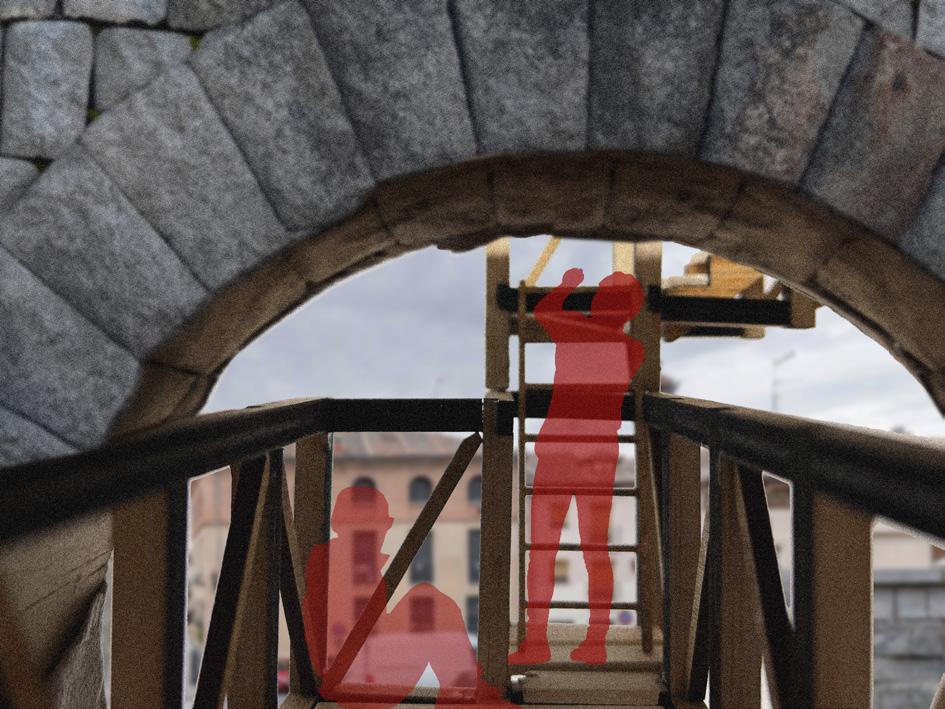 To decide on a new site, we focused on Merola’s Tower’s interaction with its crumbling stone wall it supports and the history that wall represents. Limited to the borders of Segovia, we focused in on the most historical part of the city: the aqueduct. While the aqueduct itself is an extremely visual piece of history, there are still many hidden elements which we wanted to help visitors rediscover, just as Merola’s Tower reestablishes historical views from its tower which have been lost for centuries.