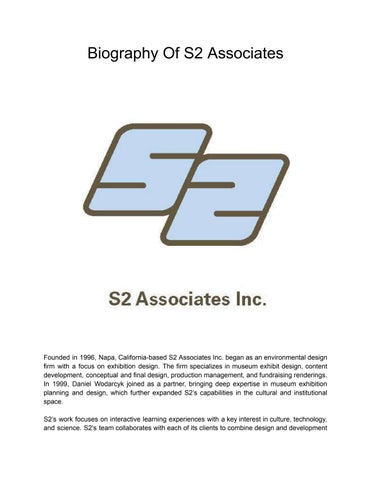 S2 Associates Inc., established in 1996 and headquartered in Napa, California, has steadily built a reputation as a firm dedicated to environmental and exhibition design. Initially focused on creating engaging museum exhibits, the company expanded its services to include content development, conceptual and detailed design, production management, and rendering work for fundraising efforts. The firm's growth was further enhanced in 1999 when Daniel Wodarcyk joined as a partner, bringing valuable expertise in museum exhibition planning and design that broadened S2’s offerings in cultural and institutional exhibit projects. Central to S2 Associates’ work is creating interactive learning environments emphasizing culture, science, and technology. The company places great importance on collaboration, working closely with clients to integrate their knowledge and goals with S2’s design and development capabilities. This collaborative approach results in meaningful and memorable exhibits for visitors. One of the firm’s defining characteristics is its cooperative approach to project development. This was evident from their first major project, The Tech Museum of Innovation, and continued with work at institutions like Liberty Science Center and the Nevada Discovery Museum. S2 maintains strong partnerships with exhibit producers and professionals across the United States and internationally, setting the company apart from many competitors in the exhibit design field. Each project typically begins with a workshop that brings together key stakeholders and exhibit specialists. These sessions, often held at S2’s studio near the Napa River, provide a forum for sharing ideas, setting objectives, and addressing challenges early in the process. Throughout the project timeline, S2 prioritizes clear, ongoing communication with clients and team members to ensure smooth progress and alignment.