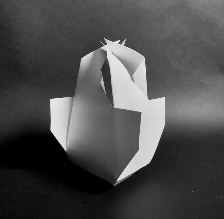 After a lot of trial and error I created a sustainable food storage container that opens and closes manufactured out of one 14” x 11” sheet of paper, six cuts, two pieces of tape and four folds. While creating an artistically interesting vessel the original goal to contain, protect and transport was still achieved and the vessel can be reproduced cheaply and easily. Arch 113.05 - Fall 2021