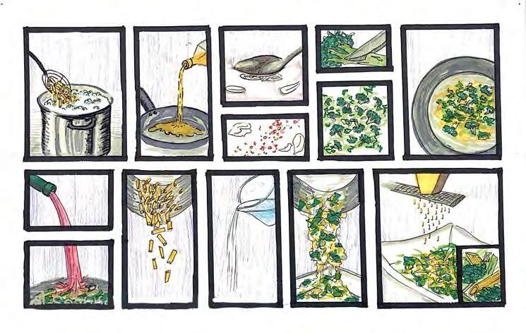 The food pavilion project began with taking elements from any previous work and scaling up to create a pavilion. This specific project used the interlocking paper and the plan view of the garlic to create a planar complex. From here the recipe side project experimented with restaraunt choreography and inspired kitchen designs. The vignettes helped the students visualize the space they were creating and how it would feel to be inside the space created.