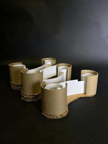 My main goal when creating my display was to continue using folding and slotting techniques while using minimal glue or tape so the structure is held up using its own intertwined material.