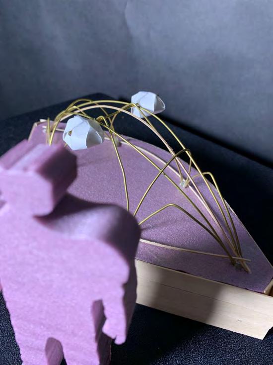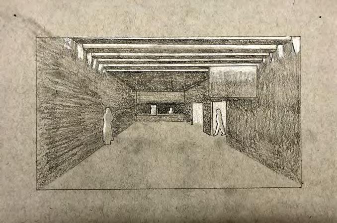 During the process of creating my final model, I did some research on the Zumthor Chapel, designed by Peter Zumthor.Ifoundalotof structural similarities between my project and this chapel. The relationship between the vertical columns and horizontal beams is similartothestructurein my pavilion. Each column has a beam that connectsittothecolumn directly across from it, creatingtheroof.