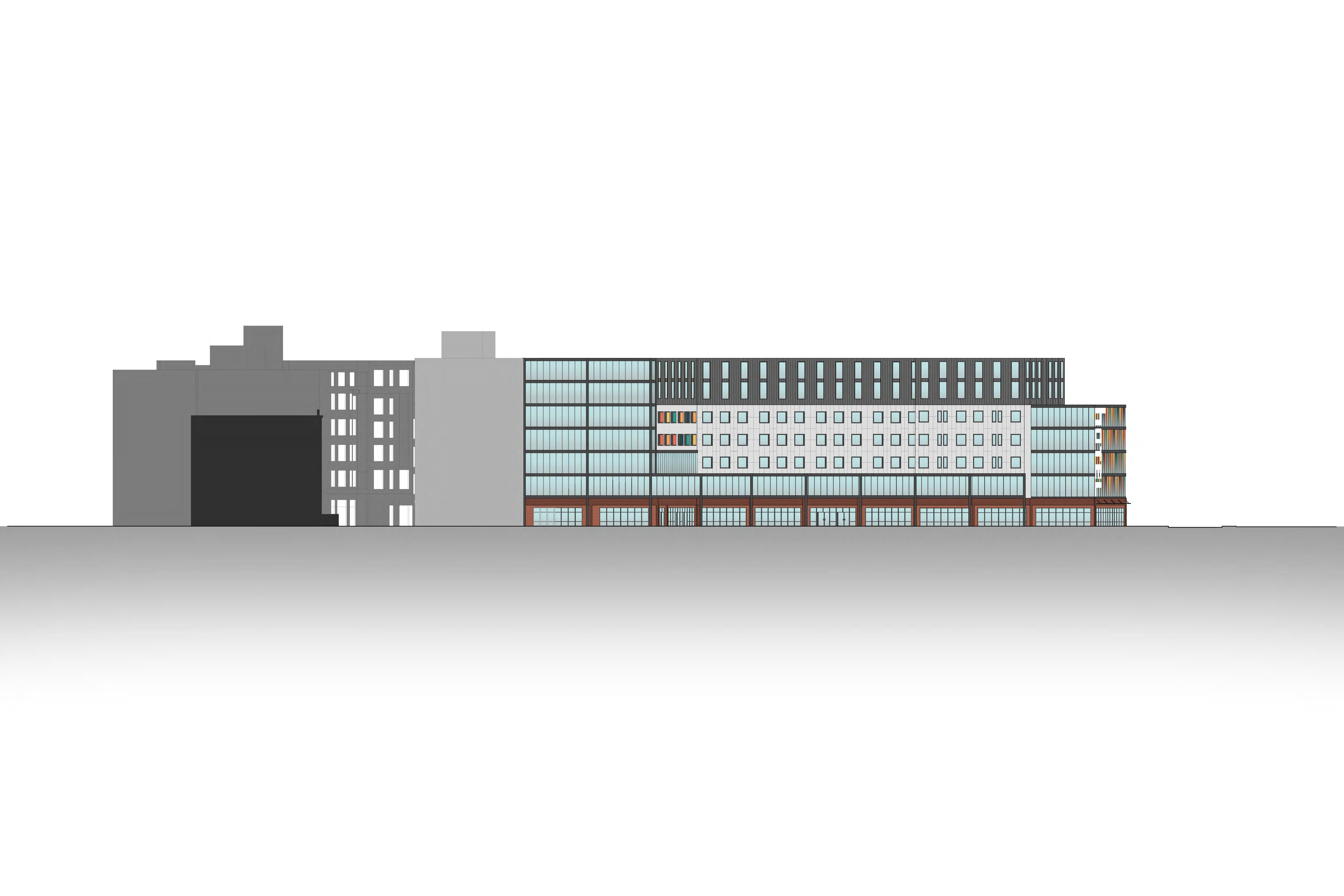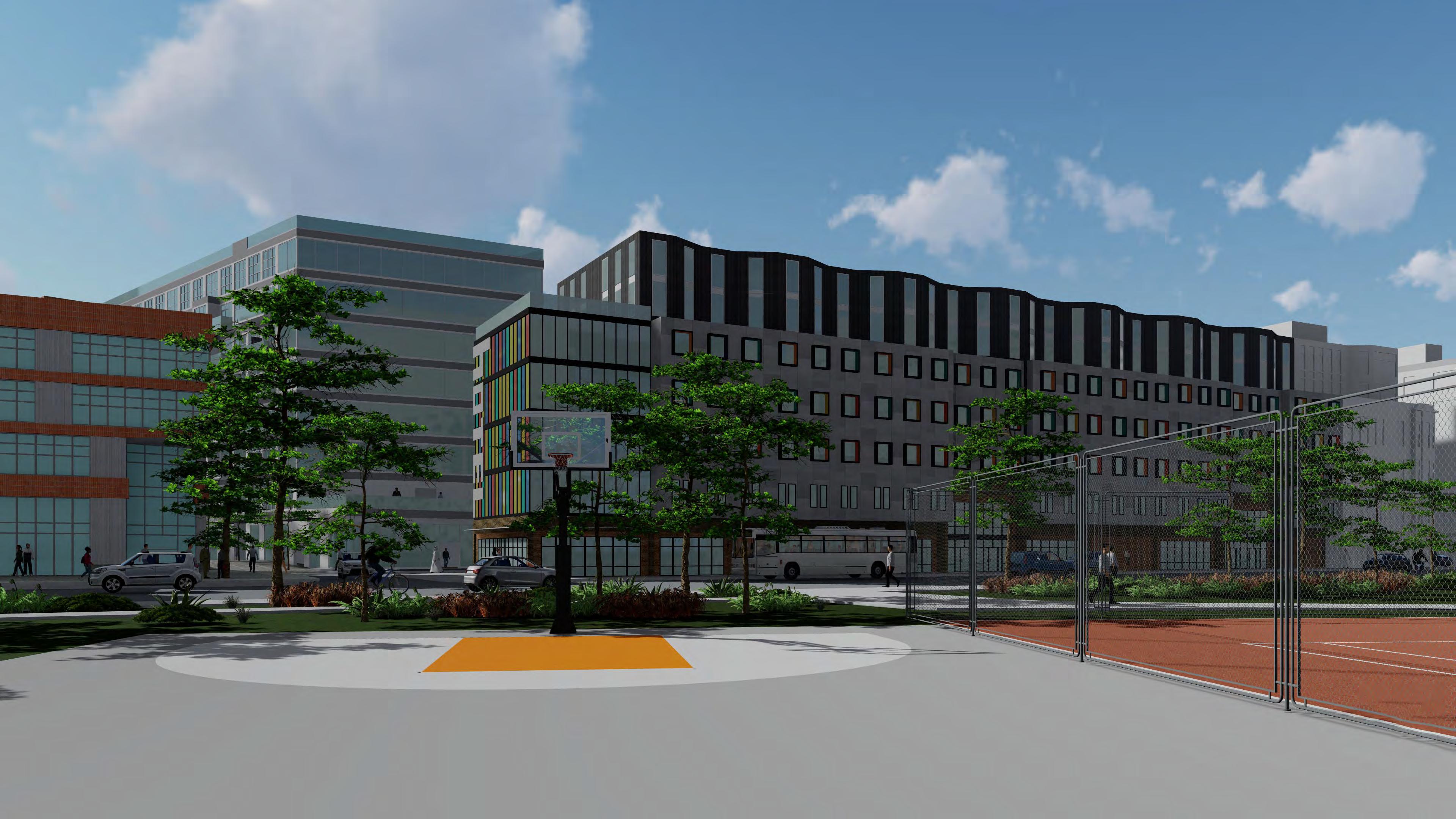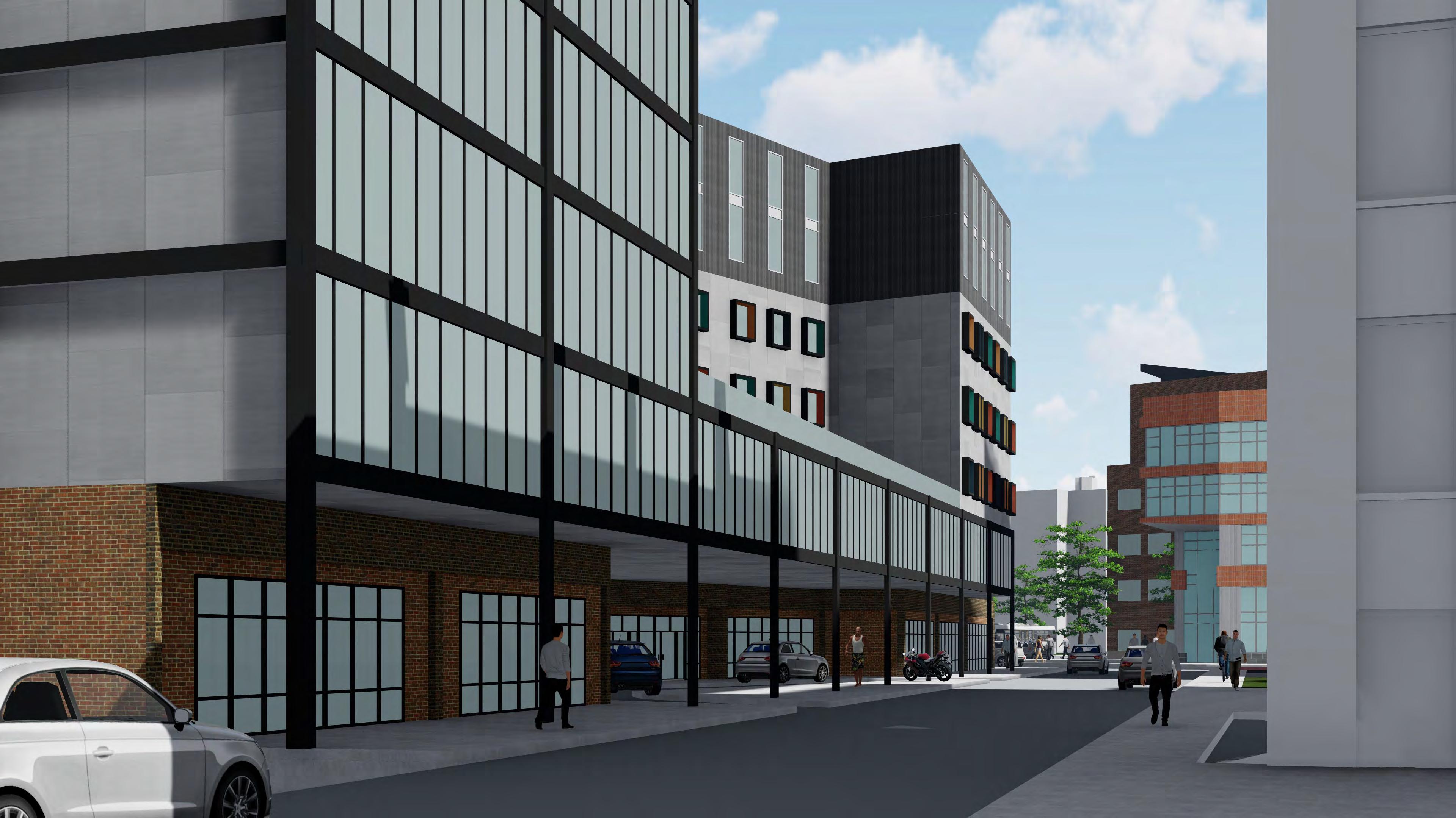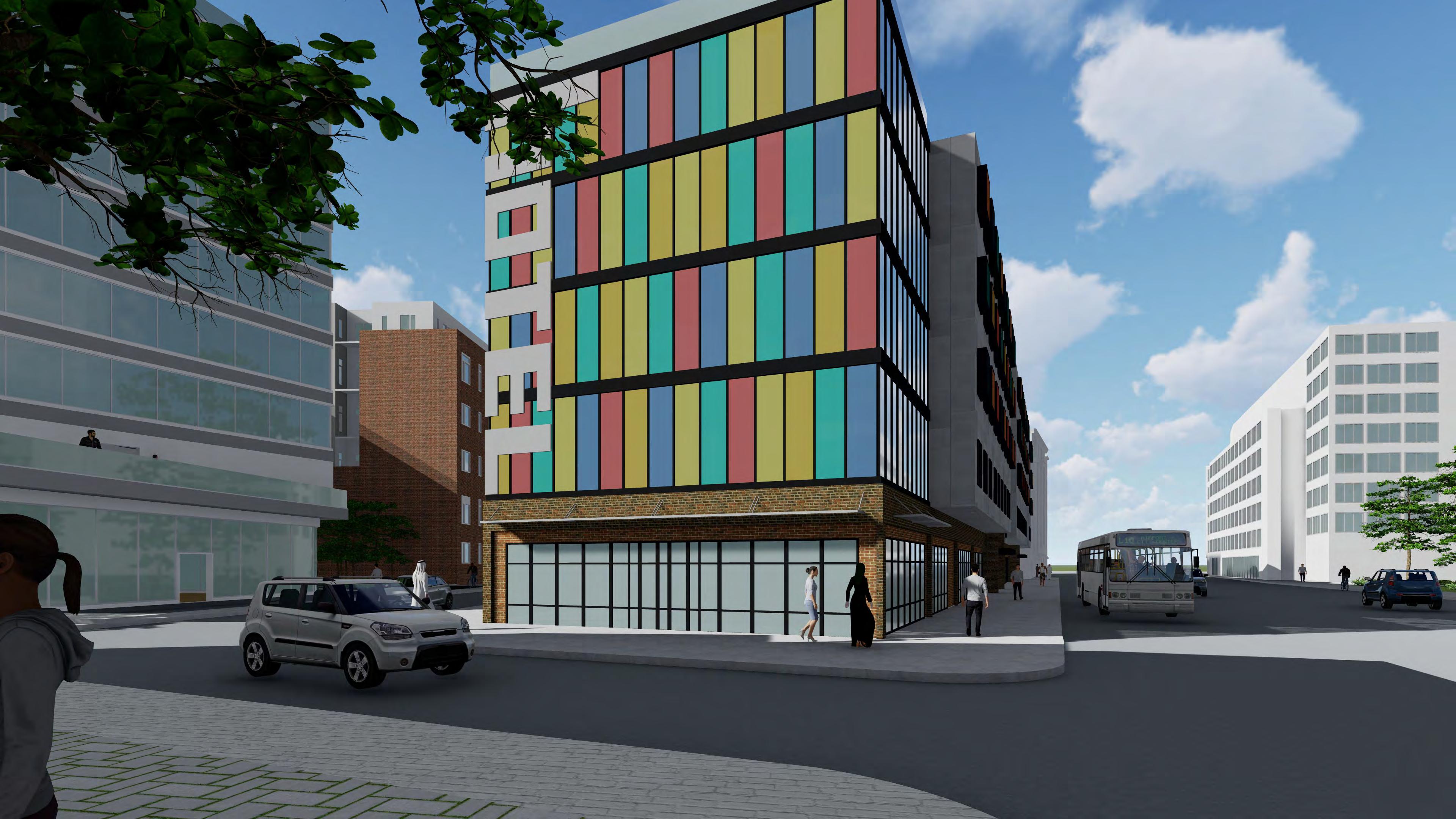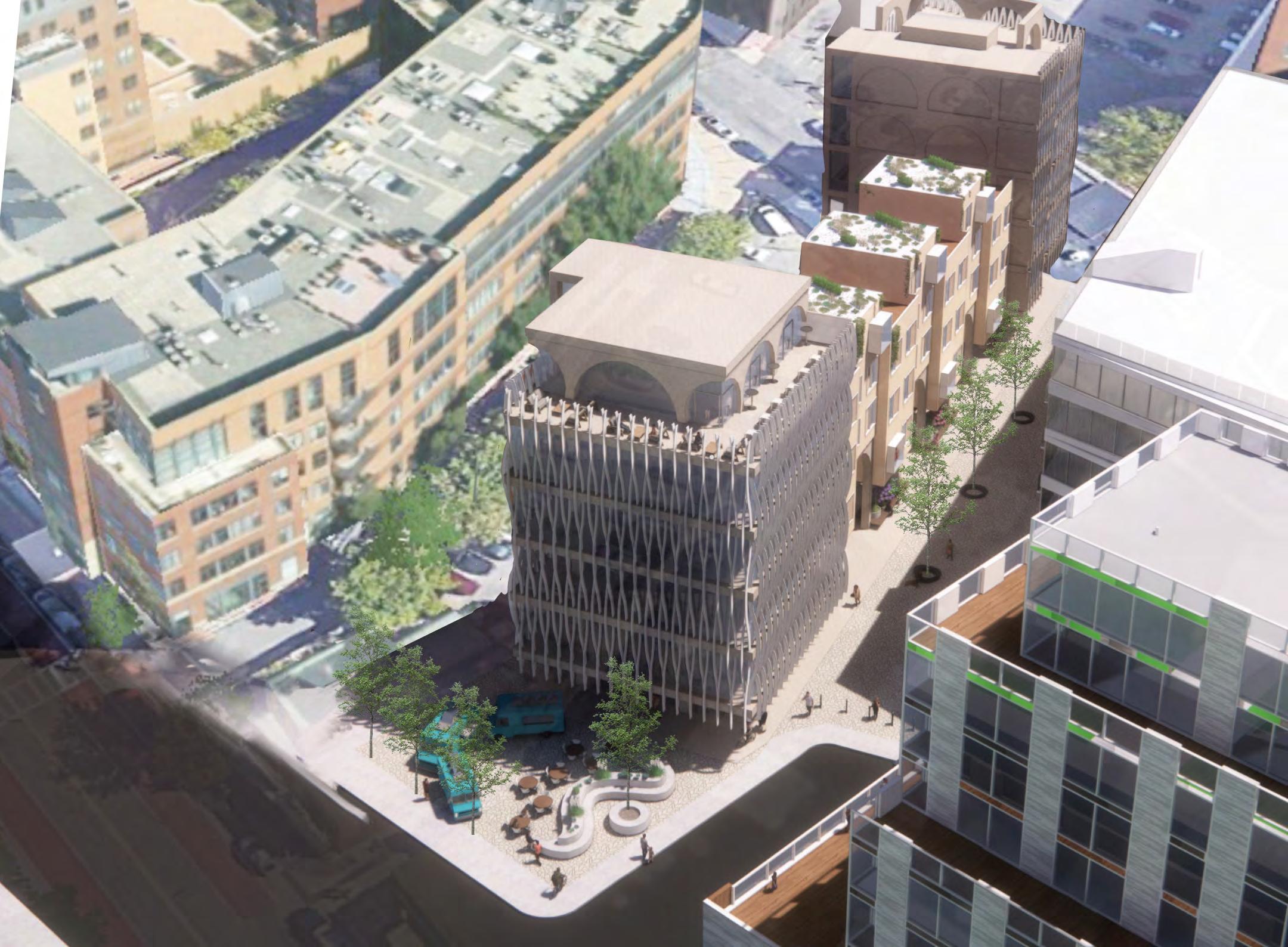 The Hub on Perry St aims to weave the different cultures of the south end together in one community oriented space. More directly, the site provides for the adjacent park, as well as the proposed townhouses, apartments, and hotel. The building is organized with an open first floor plan full of public space, as well as two bookend buildings that serve the community.