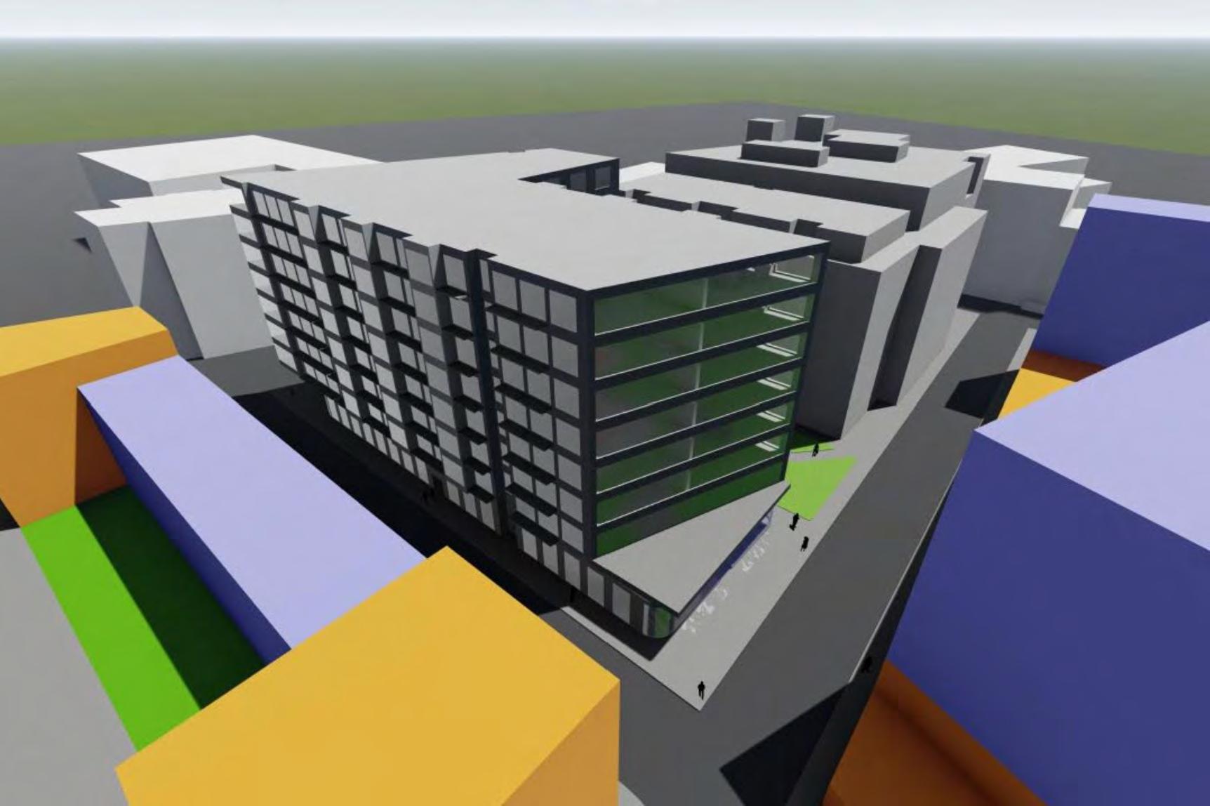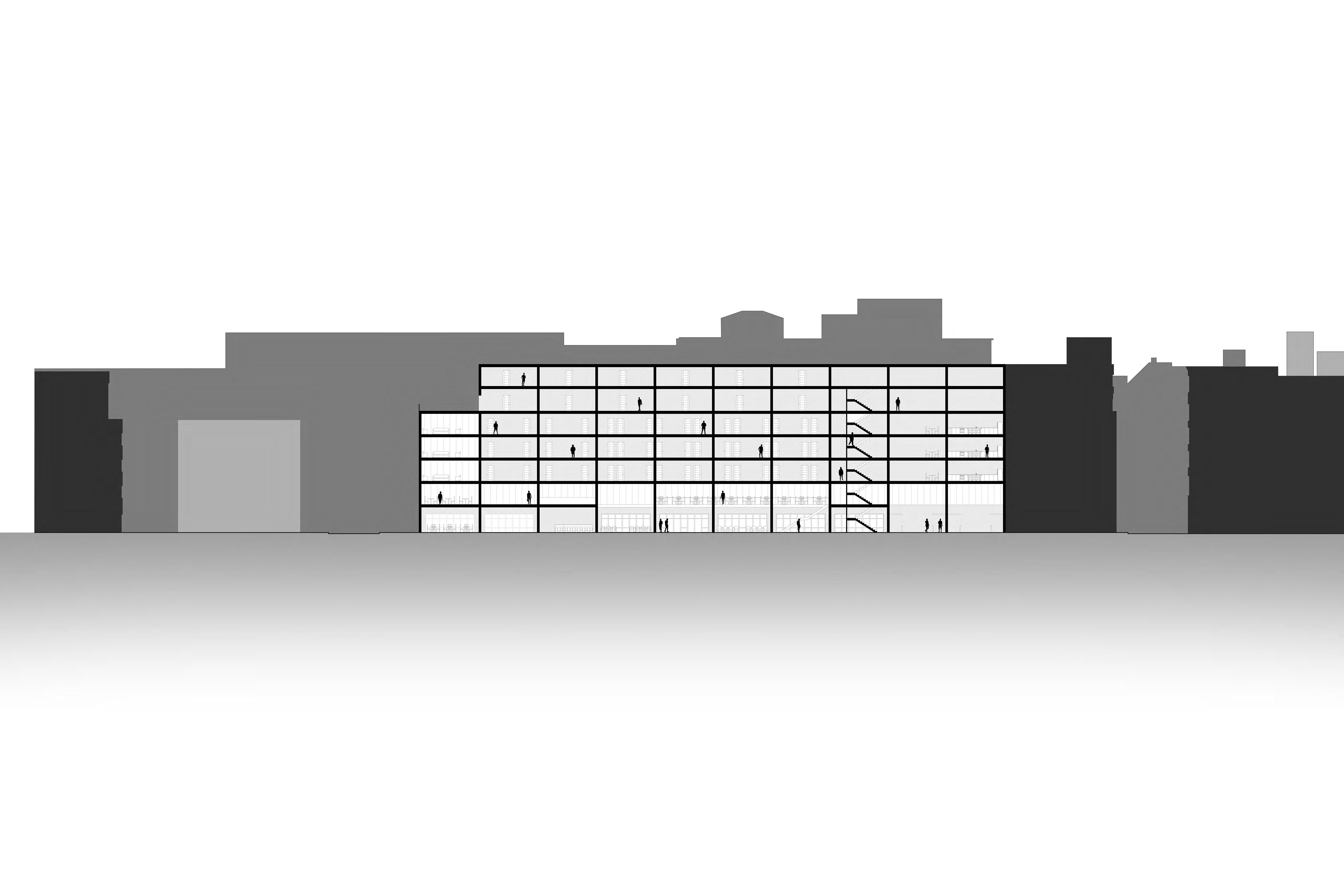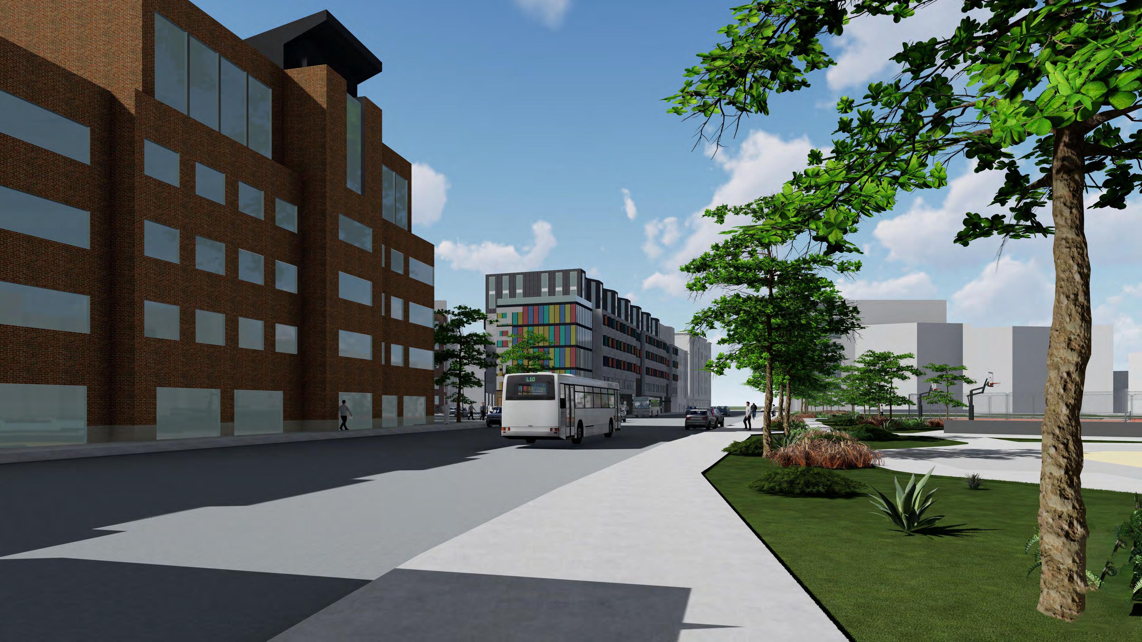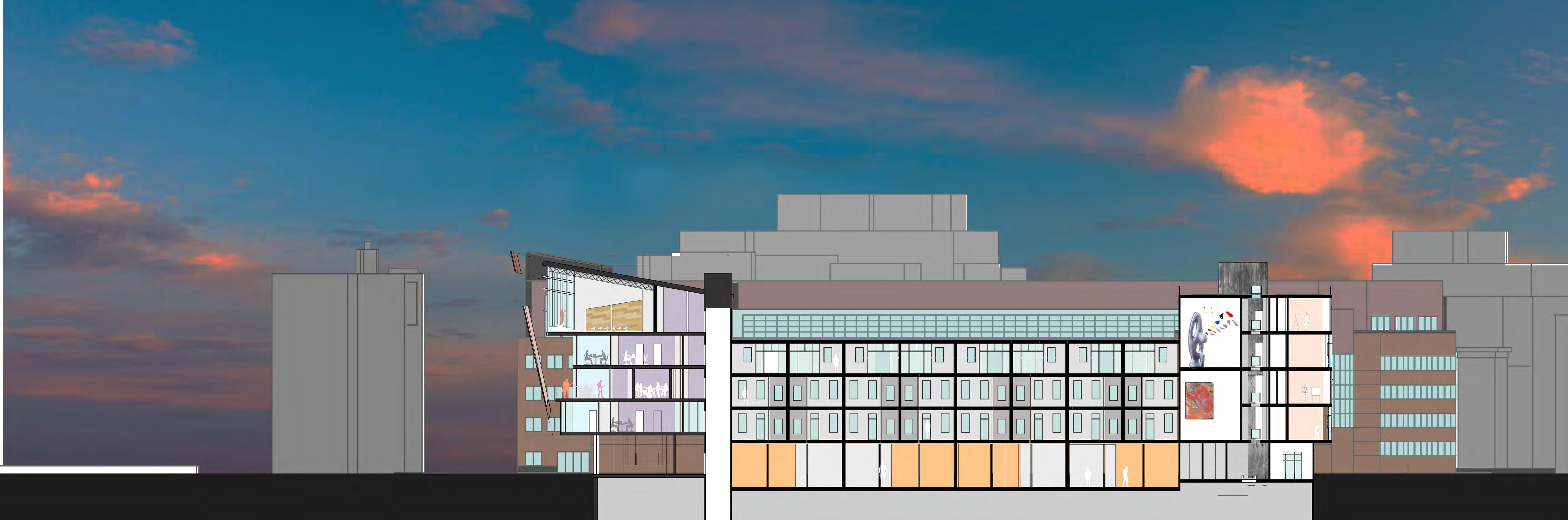 The Hub on Perry St aims to weave the different cultures of the south end together in one community oriented space. More directly, the site provides for the adjacent park, as well as the proposed townhouses, apartments, and hotel. The building is organized with an open first floor plan full of public space, as well as two bookend buildings that serve the community.