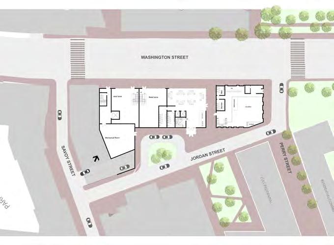 This proposed apartment complex extends the character of the neighborhood of the South End district through the introduction of ground level restuarants on Perry Street and a predestrian cut through that promotes movement from Thayer Street to Jordan Street. The buildings volume is independent from the base floor which keeps the historic ‘memory’ of the old Leon warehouse/factory with brick and curved forms; upper residential floors of the building embraces modern architecture with sharp angles. Residents living around the central courtyard can embrace the beauty and peace of the courtyard and where the view of the Jordan Lofts is also not disrupted. The building provides transparency and outdoor spaces to take advantage of the four seasons in Boston and also provides an astonishing view of the sunset overlooking Peters Park.