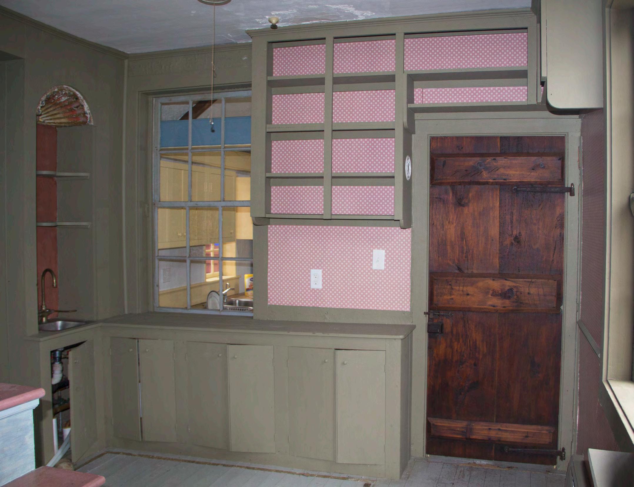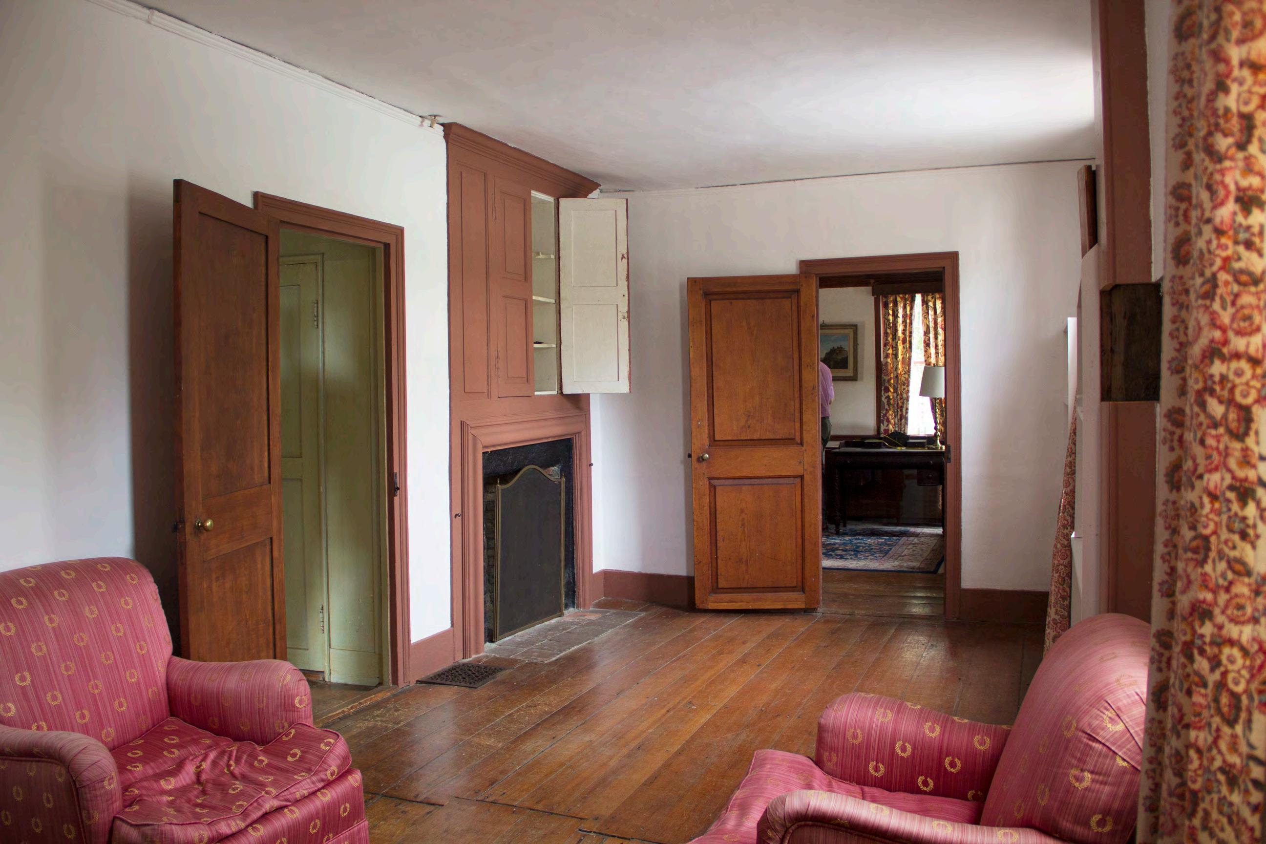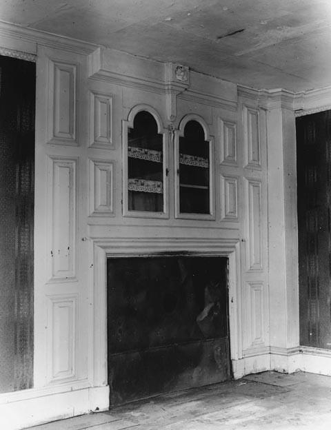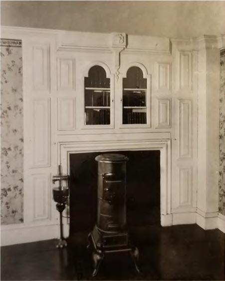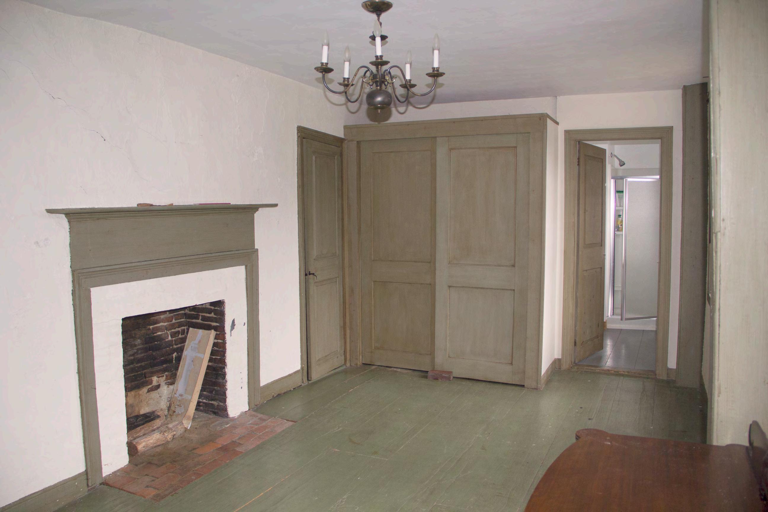 Based on photographic evidence, Goddard also appears to have done a heavy restoration of the interior, replacing missing panels on the frontespiece in the parlor, stripping paint from the frontespiece as well as many interior doors and the entry hall staircase, cutting a “peep hole” in the wall above the 1728 kitchen mantel to reveal the slope of the chimney stack, and possible replacing most of the windows in the building with reproductions.