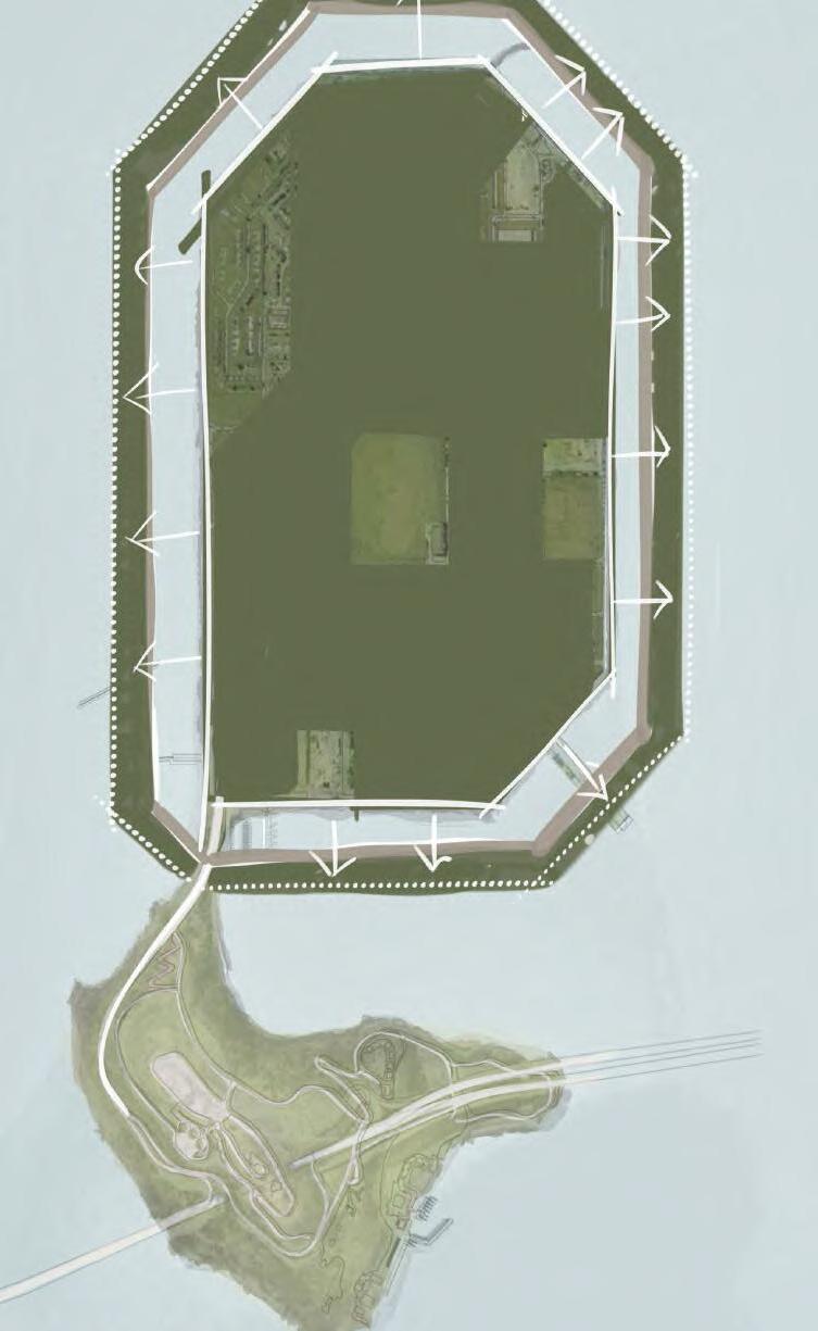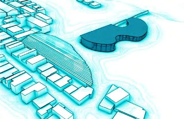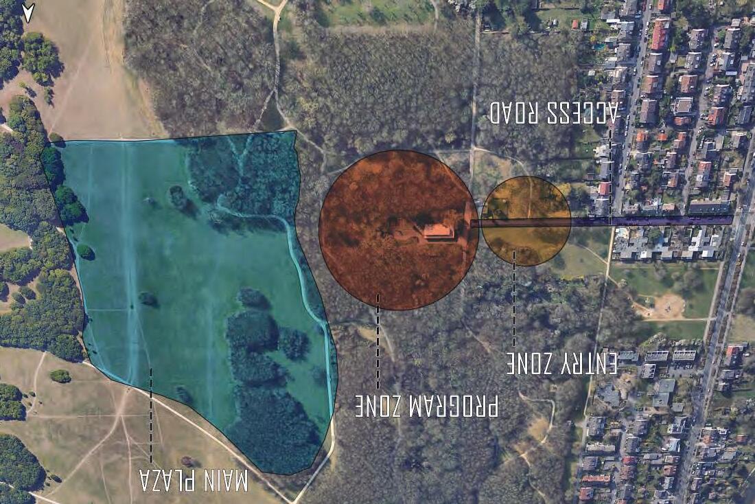 The site has plenty of opportunities for program distribution and access points. The program is located in the northeast part of the site in the first schematic design; this zone creates private access to the building without interrupting the neighborhoods and provides flexibility in traffic issues related to the annual festival.