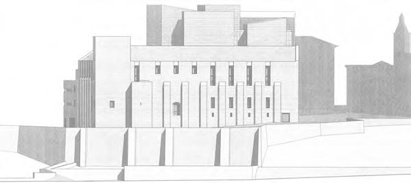 This project uses materiality and architectural form to connect to the site’s history, as the arching forms create drastic interior spaces that put emphasis on natural light and scale, evoking a unique perspective for the museum viewers. In contrast, the alignment of the new building with the organization of the ruins below creates a unique juxtaposition within the design. Public access to the archaeological site is strategically incorporated into the Murcia fabric as the space takes advantage of the existing road conditions as circulation devices.