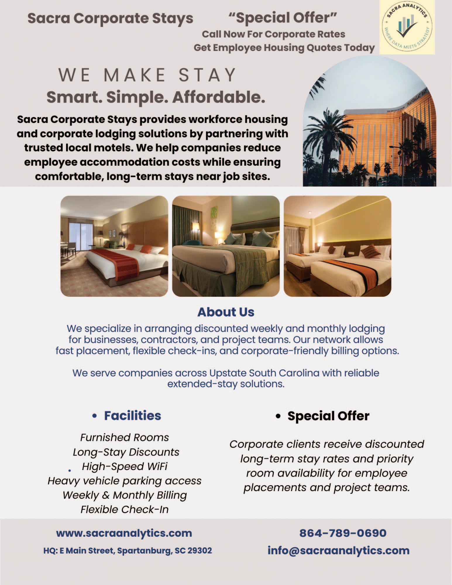 Front Desk Manager & Housekeeping Couple Wanted for franchise hotel in Columbia, SC. Accommodations provided. Fluent English required. Text / Call 704-701-9975.