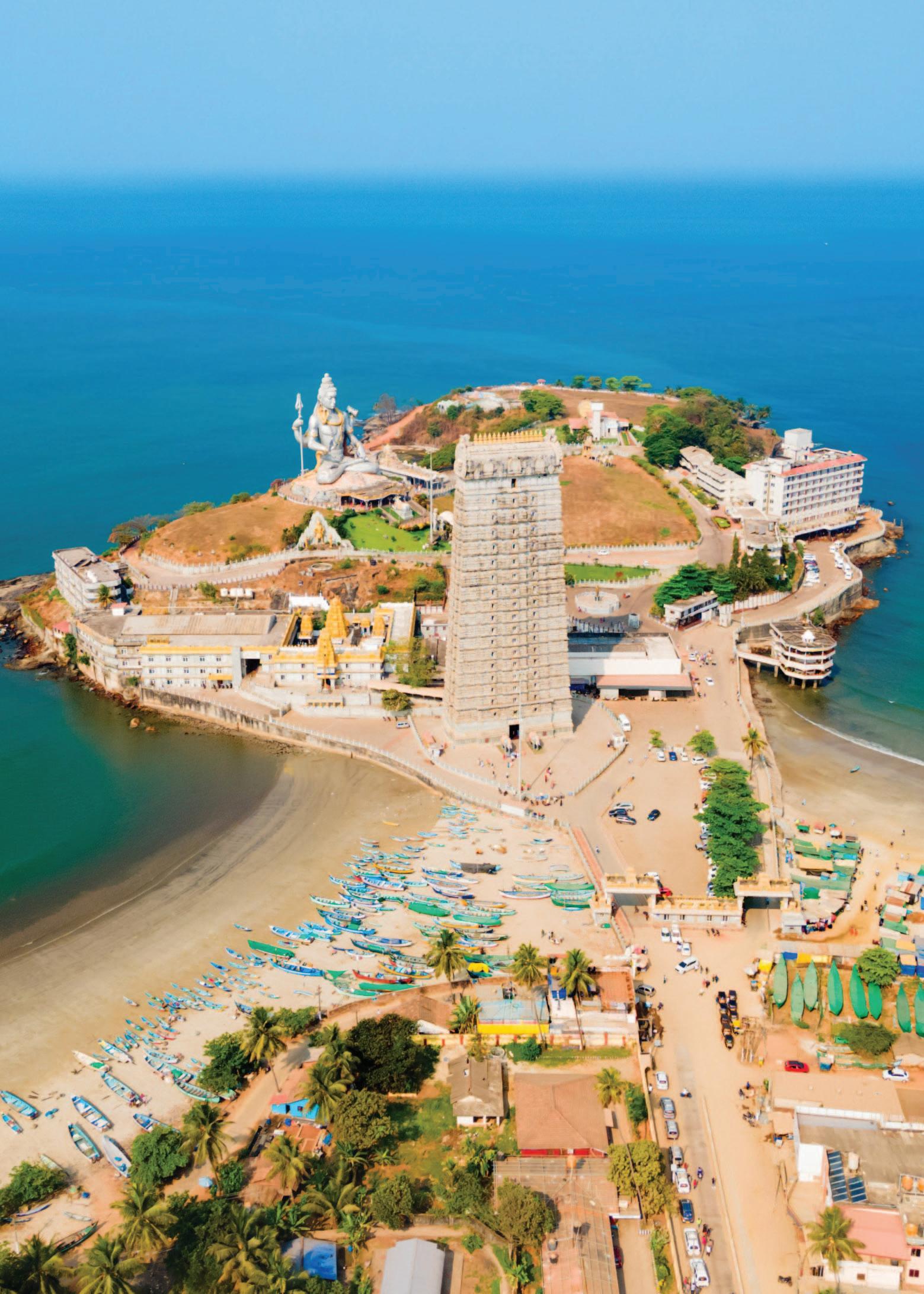 Murudeshwara Temple is located in Karnataka, on the coast of the Arabian Sea. It is dedicated to Shiva and a 20-story Raja Gopura was constructed at the temple in 2008.