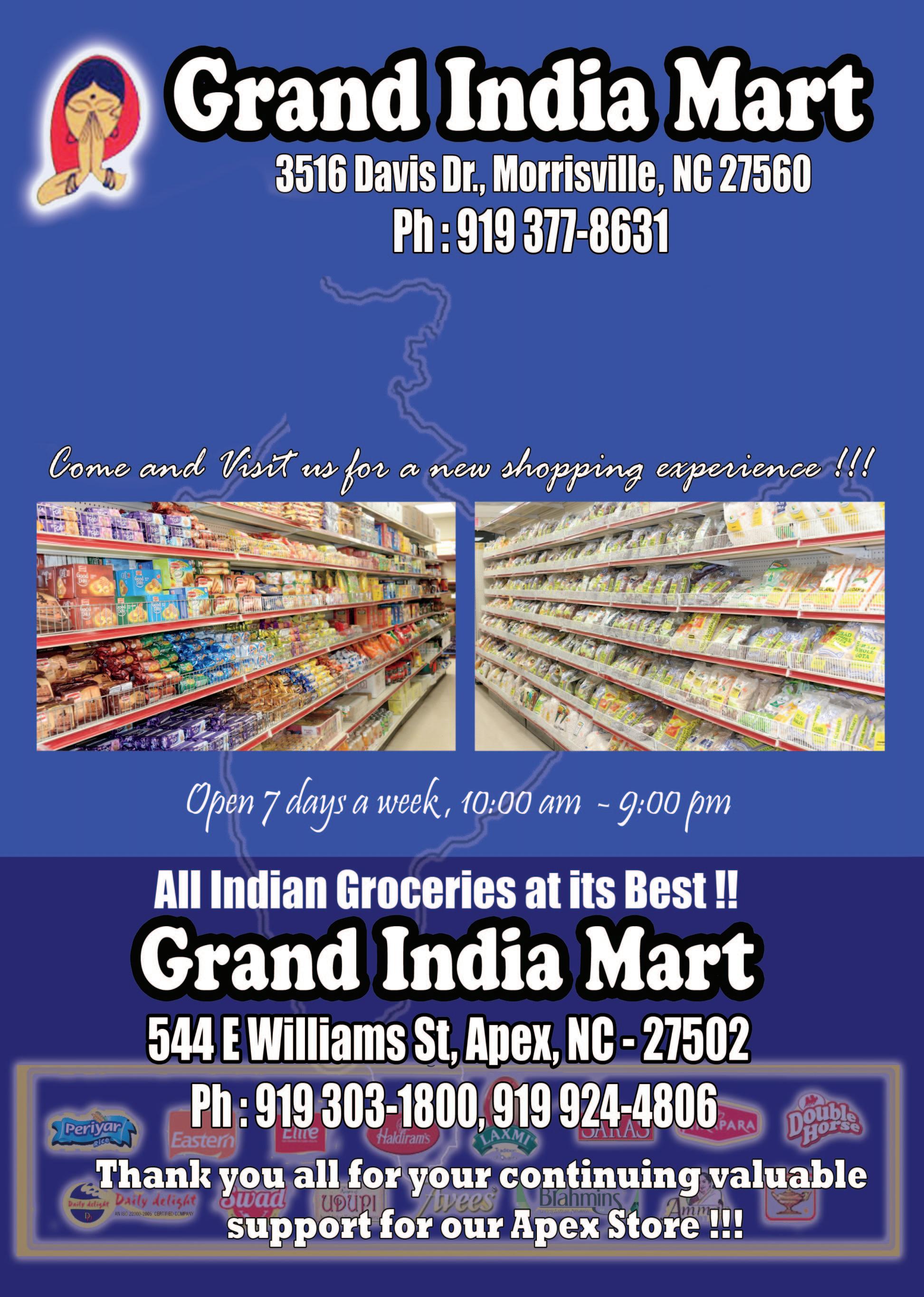 OPEN 7 DAYS WEEK 11 AM - 8 PM 919.380.0113 / Patelbros.com 802 E. Chatham Street, Cary, NC 27511 • Indian & Pakistani Groceries • Frozen Foods & Ice Cream • Fresh Sweets & Snacks • Stainless Steel Utensils • Clean & Organized • 12,000 sq ft Super Store! Fresh Vegetables: Every Tues.,Thurs., & Sun. We Accept EBT Cards Visa, MC, Discover & Am Ex Khanna & Son Jewelers Located next door to Patel Bros. HELP WANTED: ALL POSITIONS Cary@patelbros.com Get SALES INFO via TEXT, simply enter your cell phone # at store! or LIKE us on FaceBook at Patel Brothers Cary.