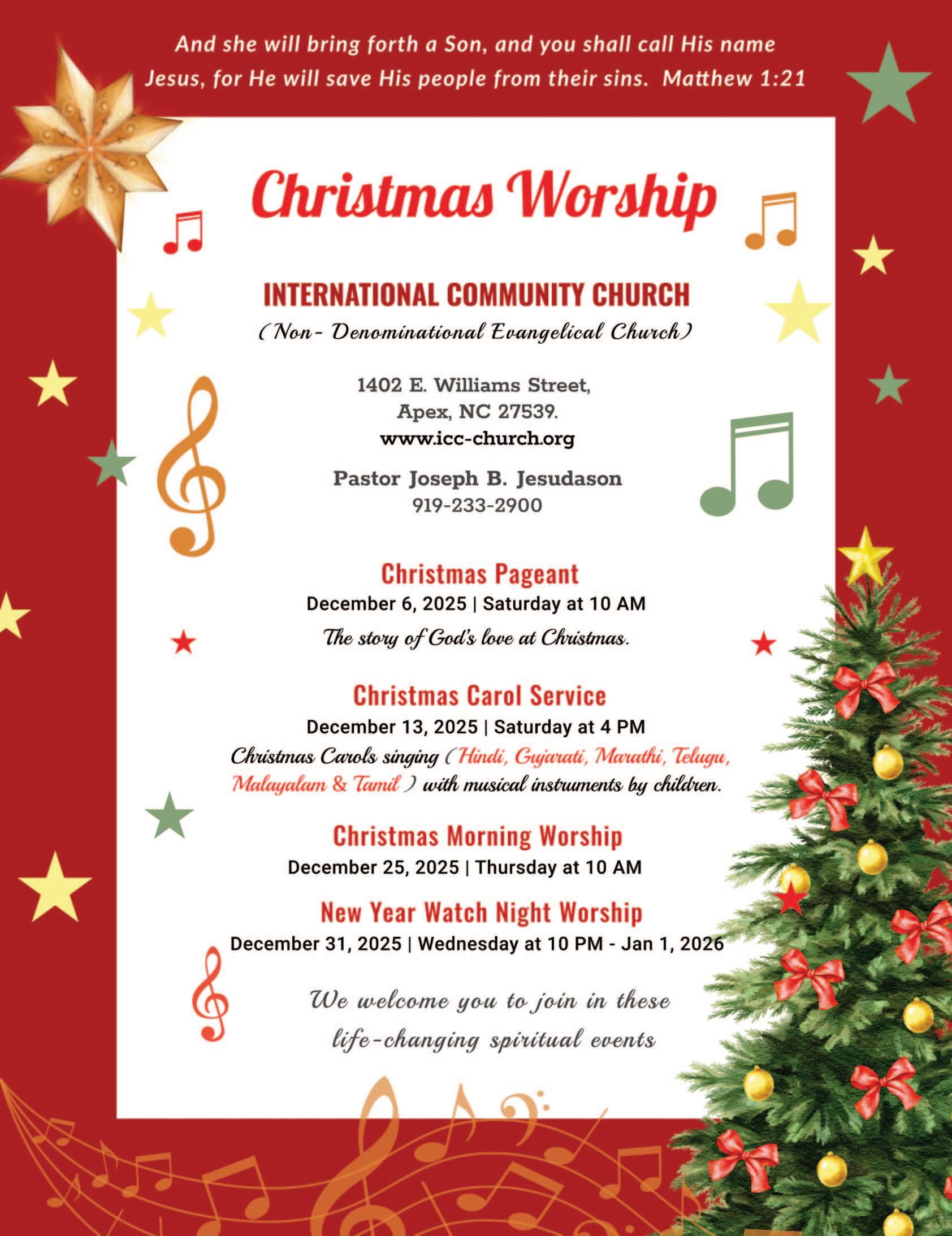 ICC Christmas: Apex, NC (December 6 – 31, 2025)