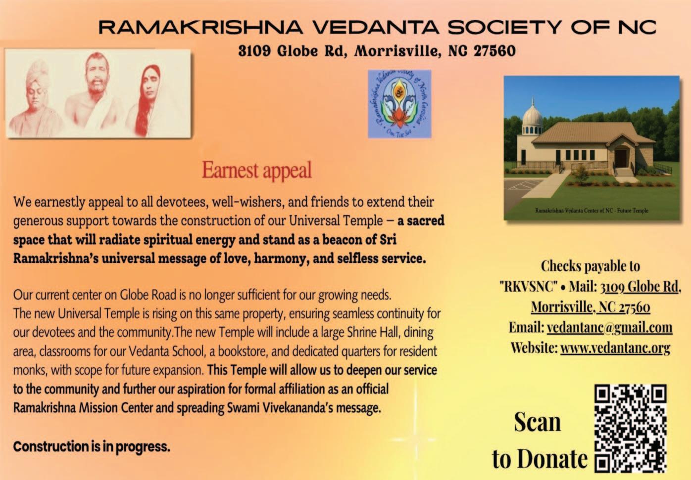Raleigh Heartfulness and HSNC will present insightful talks, a children’s program, music and refreshments. It will take place on Saturday, December 20, 2025, from 3 – 6 pm, HSNC Cultural Building, 309 Aviation Parkway, Morrisville, NC. Info: Hsnctemple.org.