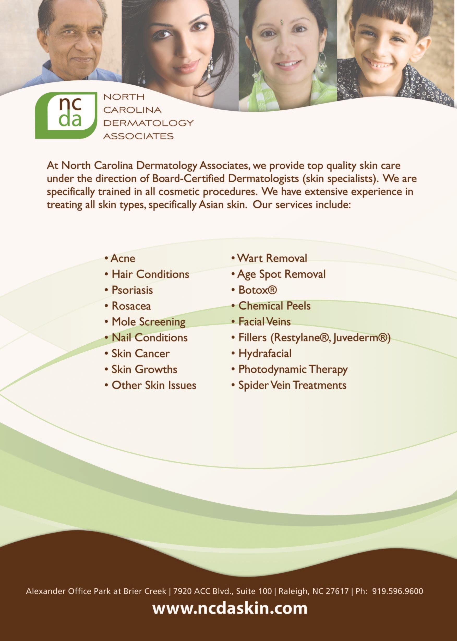 Eyebrows and full face threading, facial, waxing, henna for hair & hair color, body & hair massage. Please call 704-995-5230.