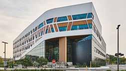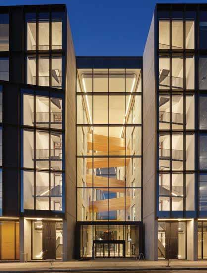 • Triple-glazed curtain walls and concrete fins at grade minimize solar heat-gain, and owner-provided LED lighting significantly reduces energy consumption.