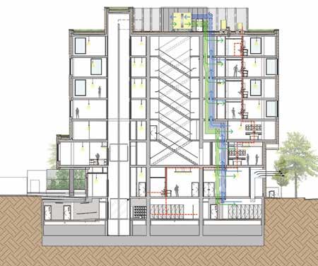 As far as we know, this is the largest residential EnerPHit project in the world. The precedents for this type of work come from Europe but we realized that we need solutions that meet North American practices, products and trade familiarity. Our design made this its focus. The construction manager PCL was critical in the strength of their quality control regime, but some trades wondered early on if the PassiveHouse was overkill. Yet as testing procedures became easier the consensus was these were key practices for use in future projects, Passive House or overwise.