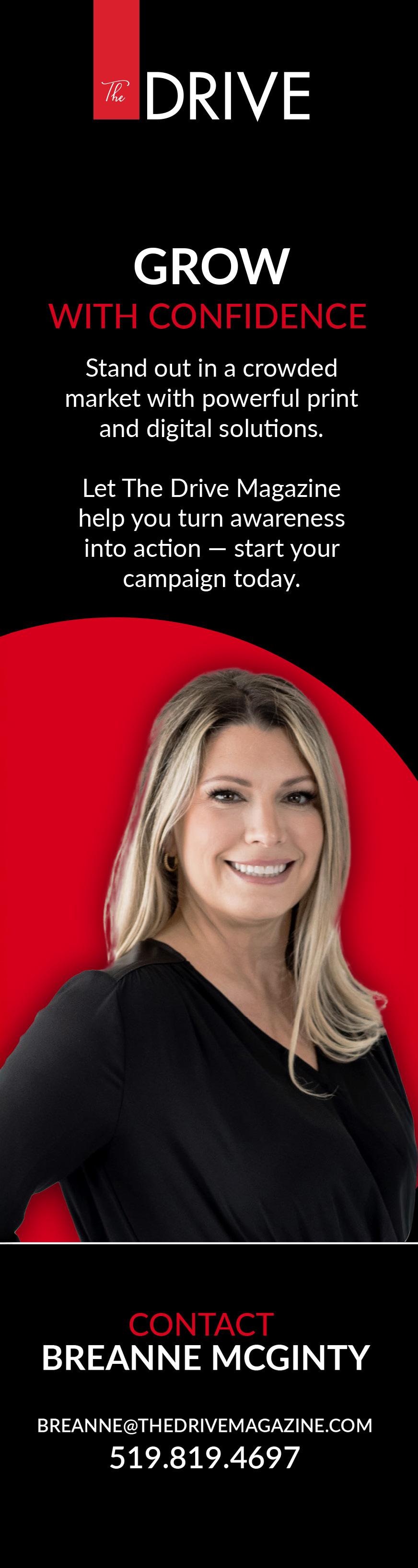 This issue is all about bold moves and fresh perspectives shaping Windsor-Essex. On our cover, Pearsall Marshall takes the spotlight, showing us what it means to lead with vision and DRIVE. Over in fashion, Mena dives into the graphic tee revolution, proving that transitional dressing can be both bold and wearable showcasing looks that take you from your 9-5 straight to your 5-9. And for something to sip while you flip through these pages, meet the two local brothers behind Drink Hyena, a non-alcoholic beer born from personal change, fueled by wellness, and bursting with flavour.