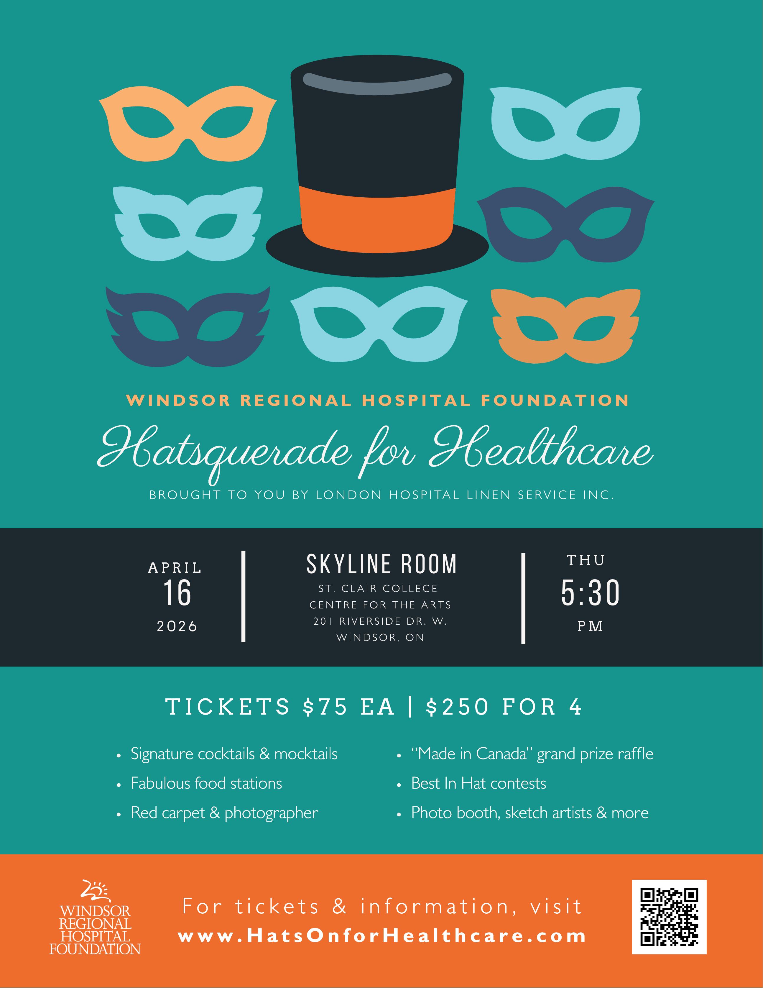 APRIL 16 Hatsquerade for Healthcare St. Clair College Centre for the Arts | 5:30pm