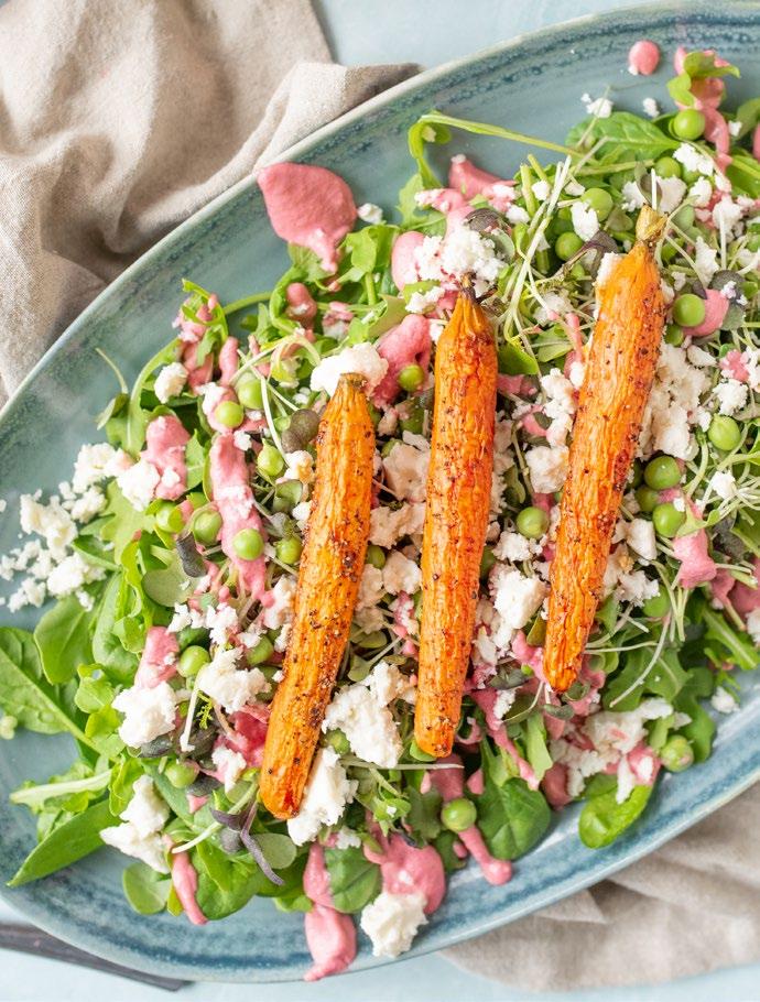 Oh So Mona – Spring Salad with Tahini Beet Dressing.