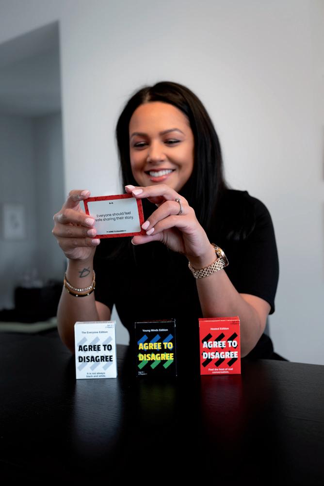 Even in the most unexpected settings, the results can be powerful. She remembers facilitating a session with a group of senior police officers using one of her deceptively simple signature tools, her Agree to Disagree card decks. “It got heated,” she laughs. “People were slapping the table, laughing, completely invested,” but beneath the humour, there was a shift in perspective. “They were able to take that energy and immediately connect it to real-life situations and how different viewpoints show up in their work.”