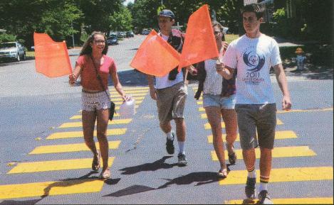 Have you ever noticed the orange flags stored in canisters attached to the crosswalk signs at the corner of Munroe Street and Latham Drive? In 2015, after nearaccidents involving pedestrians, including students walking to and from school, Susan and Doug Brown, parents of Emma ‘16 and Lily ’18, purchased the flags and installed the canisters, which they fashioned with materials from Home Depot.