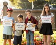 seniors Clare Fina, Skovran Cunningham, Micaela Bennett-Smith, and Ethan Ham as they cross Munroe.