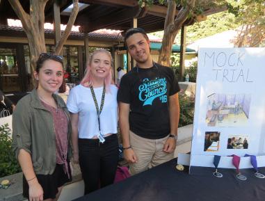 Back-to-School night, class of 2016 students Emma Brown, Emma Belliveau, and Max Schmitz explain mock trial to visiting parents and guests.