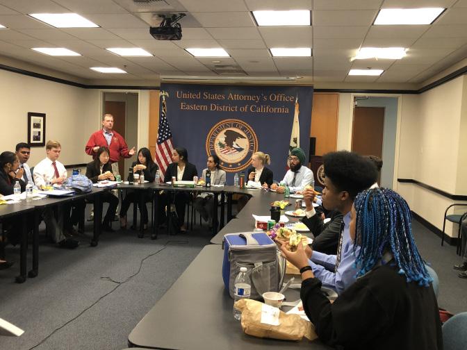The California Mock Trial competition is sponsored by the non-profit, non-partisan Teach Democracy (formerly Constitutional Rights Foundation), which each year creates and produces the source material for the program, including the description of that year’s hypothetical case. Coordination of each county’s program is most often the education department, in our case the Sacramento County Office of Education (SCOE). Volunteers from local law firms and other legal organizations serve as scoring and presiding judges.