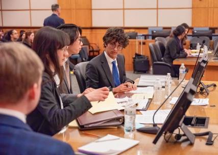 The mock trial competition simulates trial-level proceedings where students take on the roles of attorneys, witnesses, court clerks, bailiffs, and jurors. Opening statements, direct and cross-examinations, and closing arguments are all part of a mock trial. Moot Court, another student competition, is also a court trial, with the difference being that students portray attorneys arguing legal positions before a judge in an appellate court in a case that has already been tried and is now an appeals case.