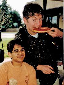 Pizza Lunch 1999. Soroush Rahimian ‘99 shares his pizza with his middle school pal Badier Velji ‘03.