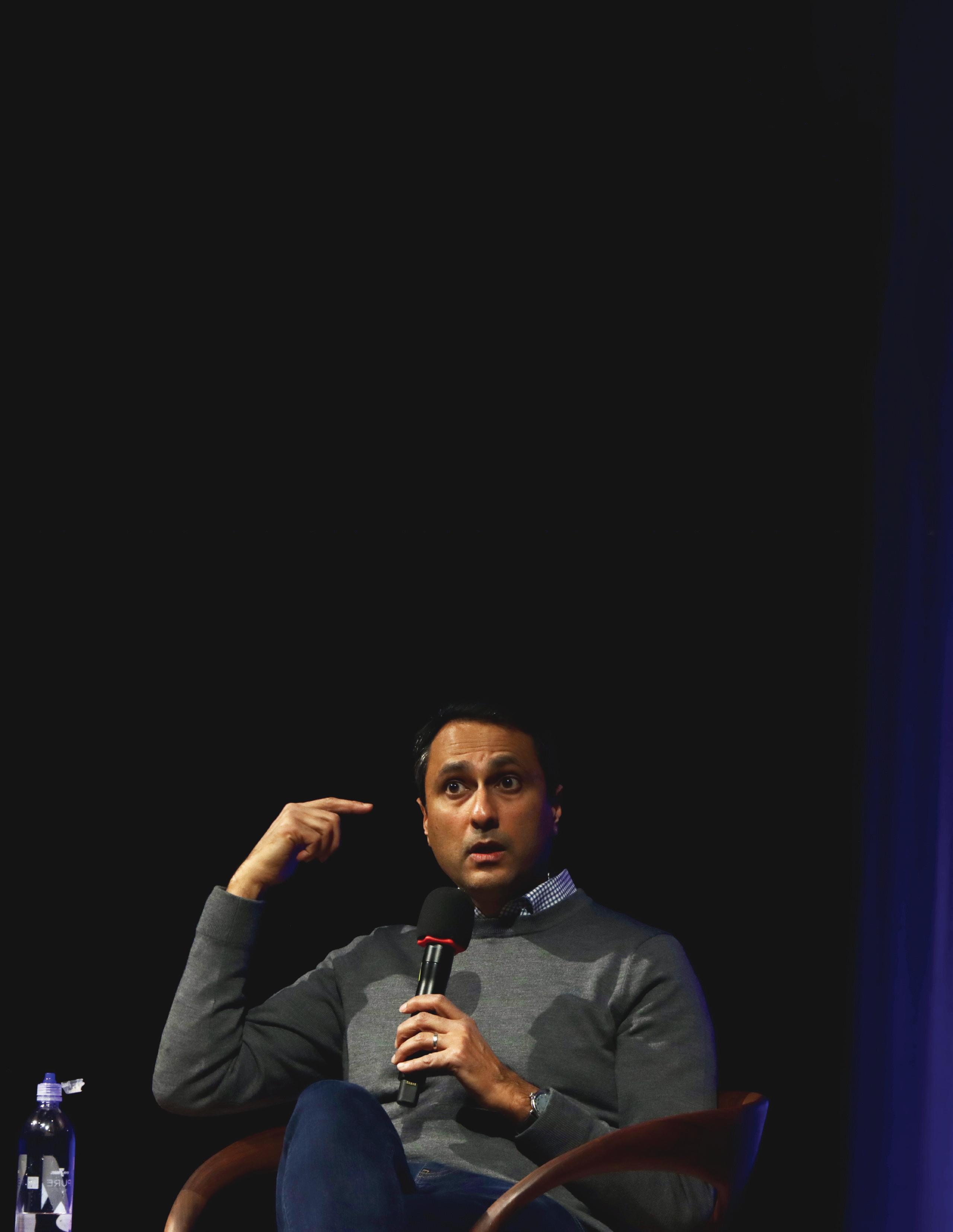 Eboo Patel speaks to high school students in the Syufy Theatre.