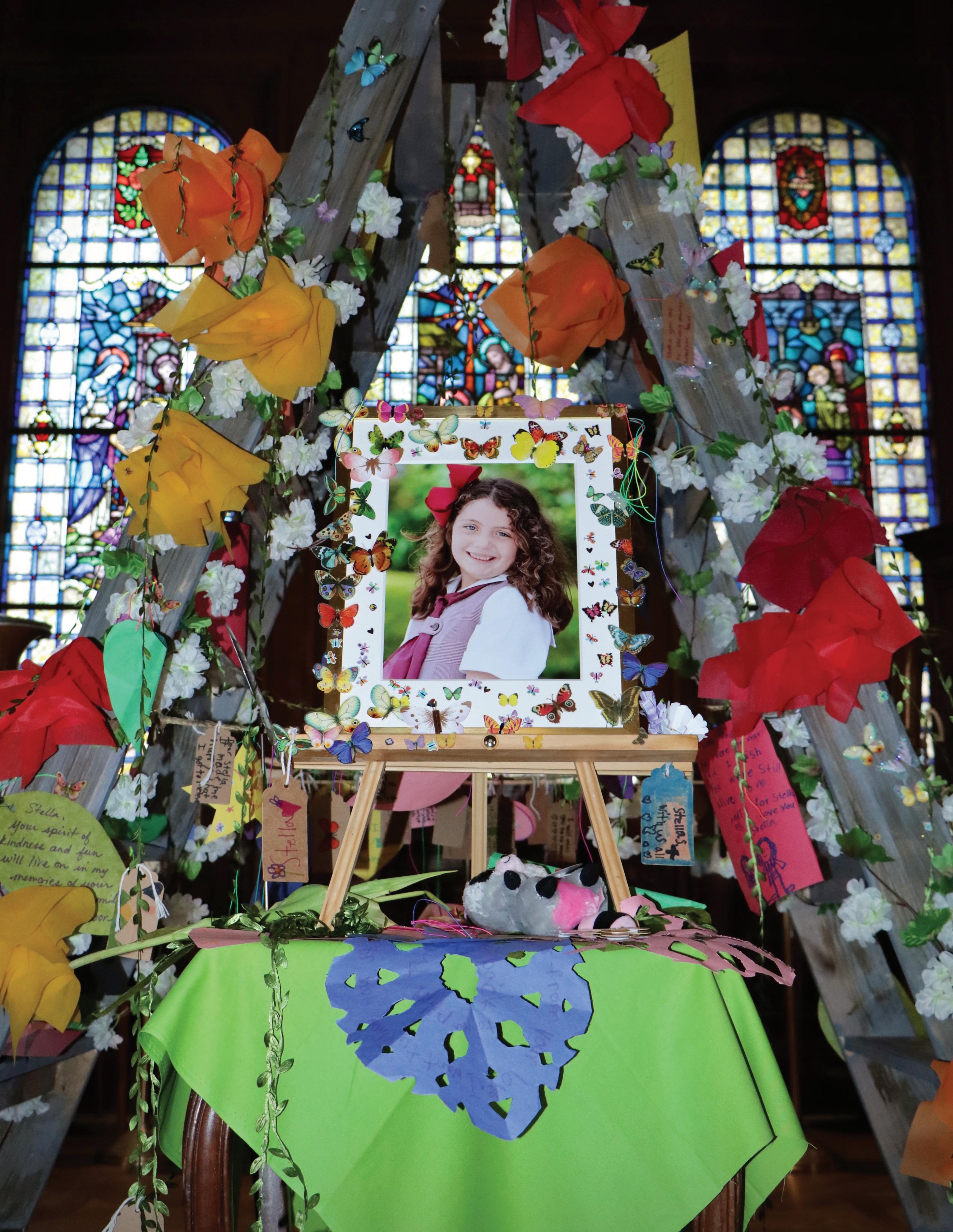 Left: An altar in the Mary Mardel, RSCJ Chapel was created in honor of Stella Angelopoulos CES'32, adorned with notes from students, faculty, staff and others in the school community.