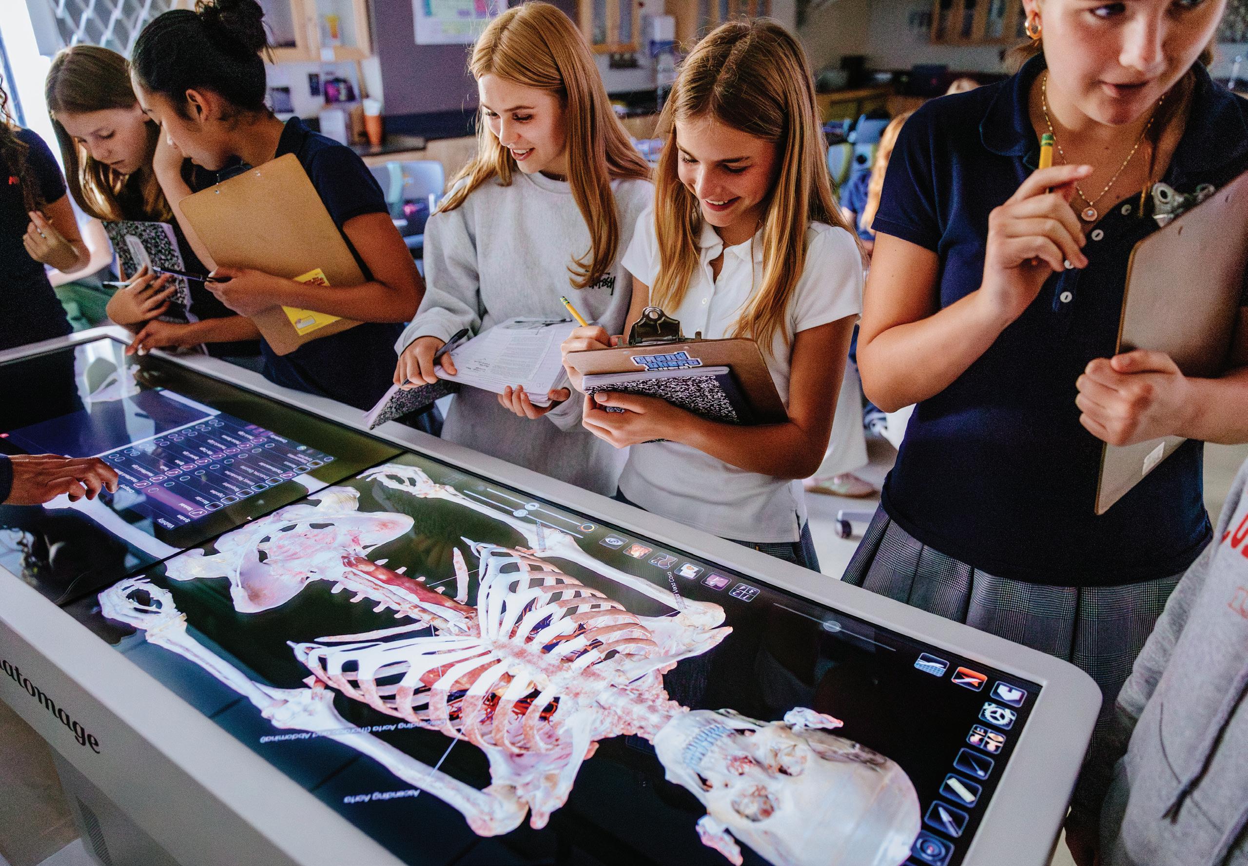 Convent eighth graders engage with the Anatomage Table during a biology activity.