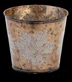 6-407CM/1WAF 6.75” Cement Botanical Design Vase, 3 Asst, 3/pk $6.99 ea $20.97 pk F772 14139 6.5” Blue & Brown Line Art Metal Potcover, 6/pk $5.39 ea $32.34 pk 6.5” M657